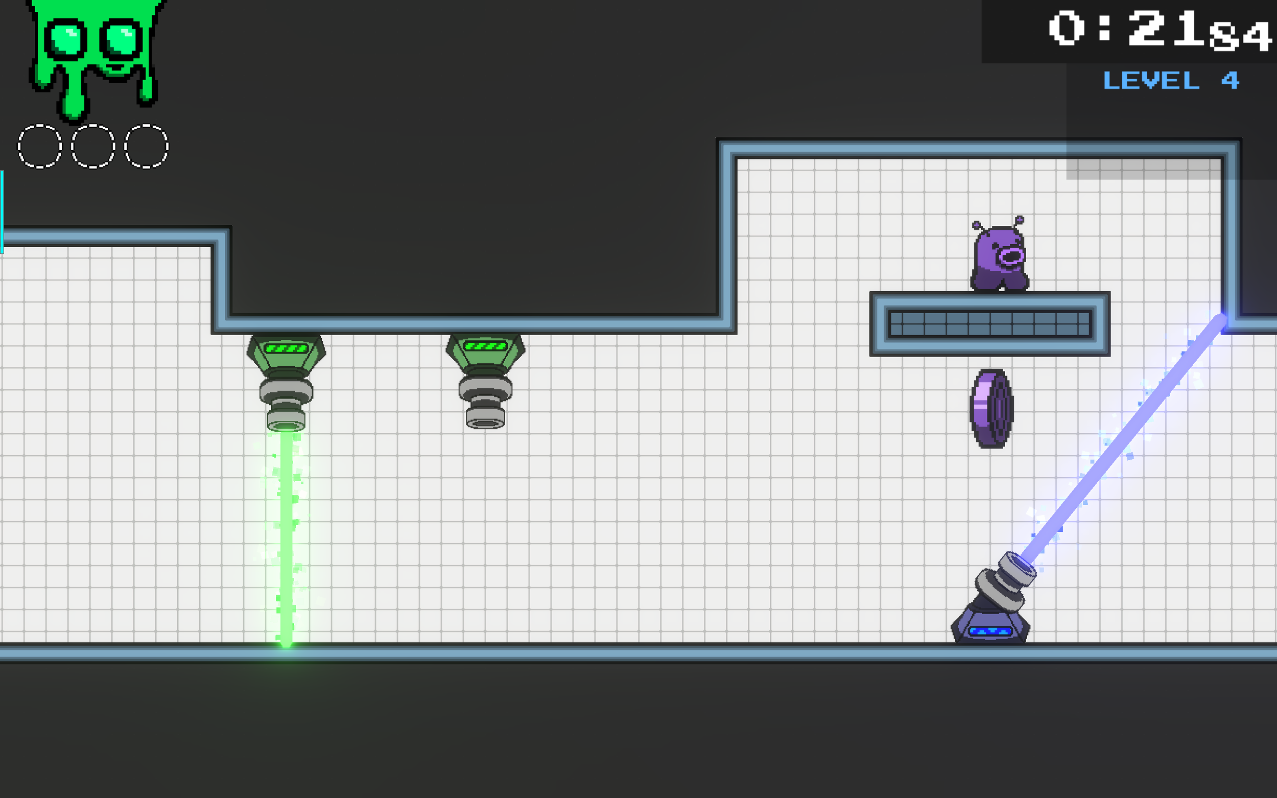 Then finally, the level ends with another sweeping laser challenge, instead this time, the laser moves up and down. This changes how the player approaches the challenge.